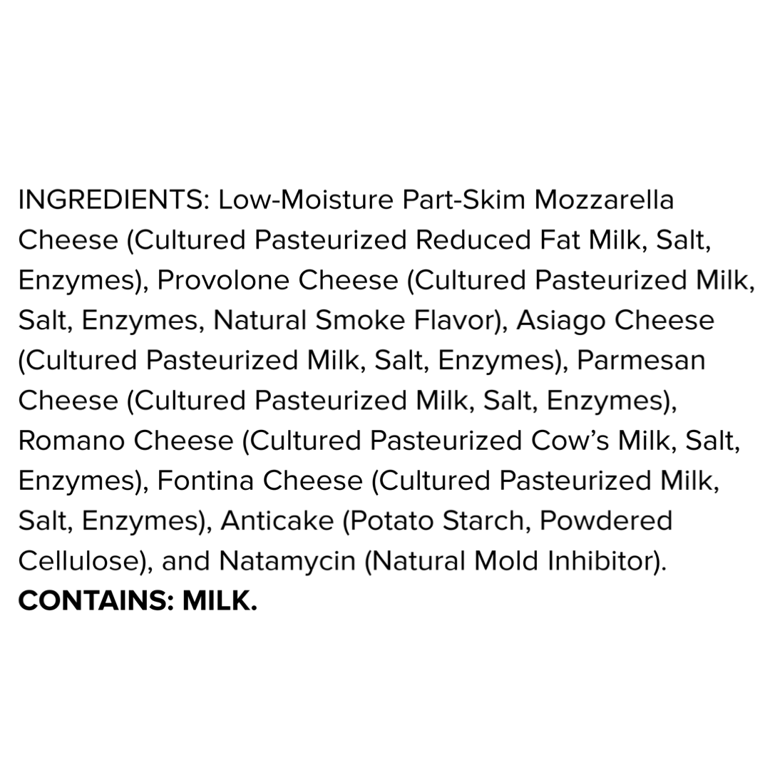 Our Shredded Italian Style Cheese is perfect for adding an authentic touch to your favorite dishes. It’s a rich and flavorful blend of classic Italian cheeses expertly shredded for easy melting, and an ideal addition to pasta, pizza, baked dishes, and more. Whether sprinkled over a fresh salad or melted into a creamy sauce, this versatile blend will enhance the taste and texture of every meal.