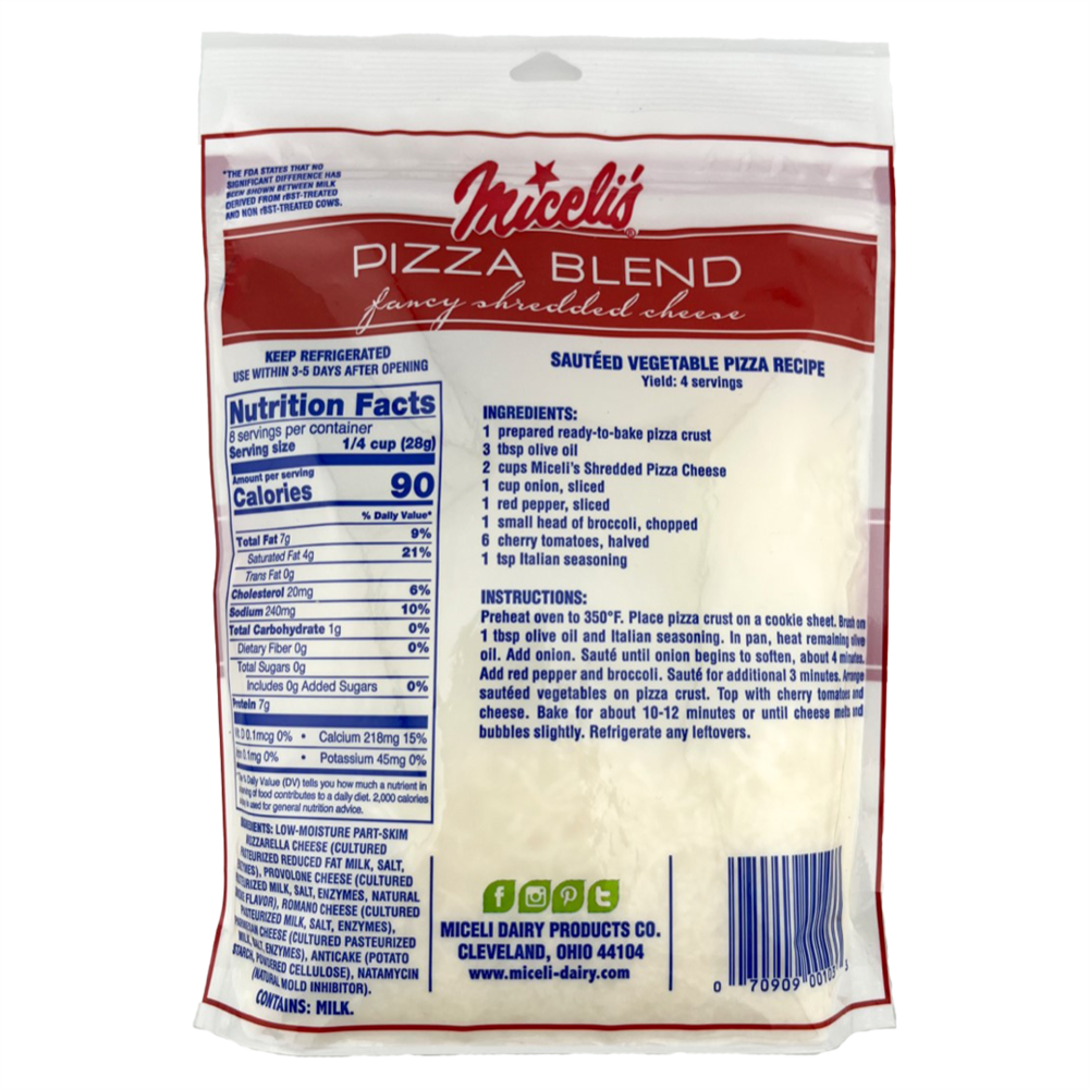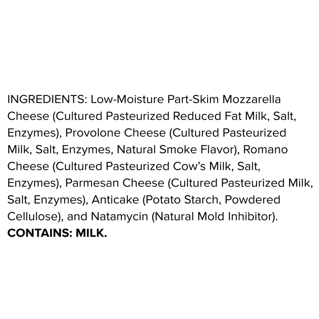 Crafted for the perfect melt and rich flavor, our Shredded Pizza Blend combines a mix of premium cheeses like Smoked Provolone, Parmesan, and Romano to create that classic pizzeria taste. Whether used for homemade pizzas, calzones, or baked pastas, this blend ensures a gooey, golden-brown finish every time.
